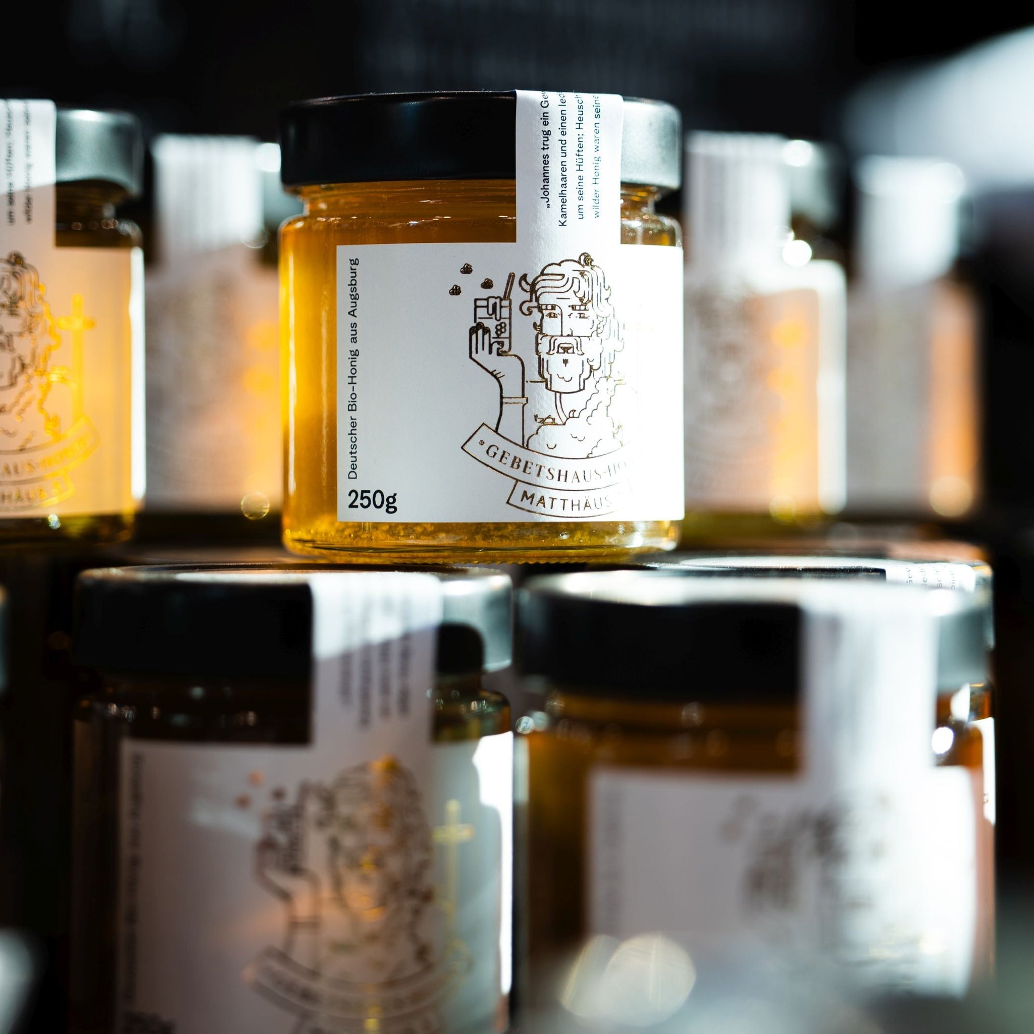 natürlich Bio, von Bienen in der Umgebung des Gebetshauses produziert und von unserem Imker Andreas sorgfältig für uns geerntet und abgefüllt.