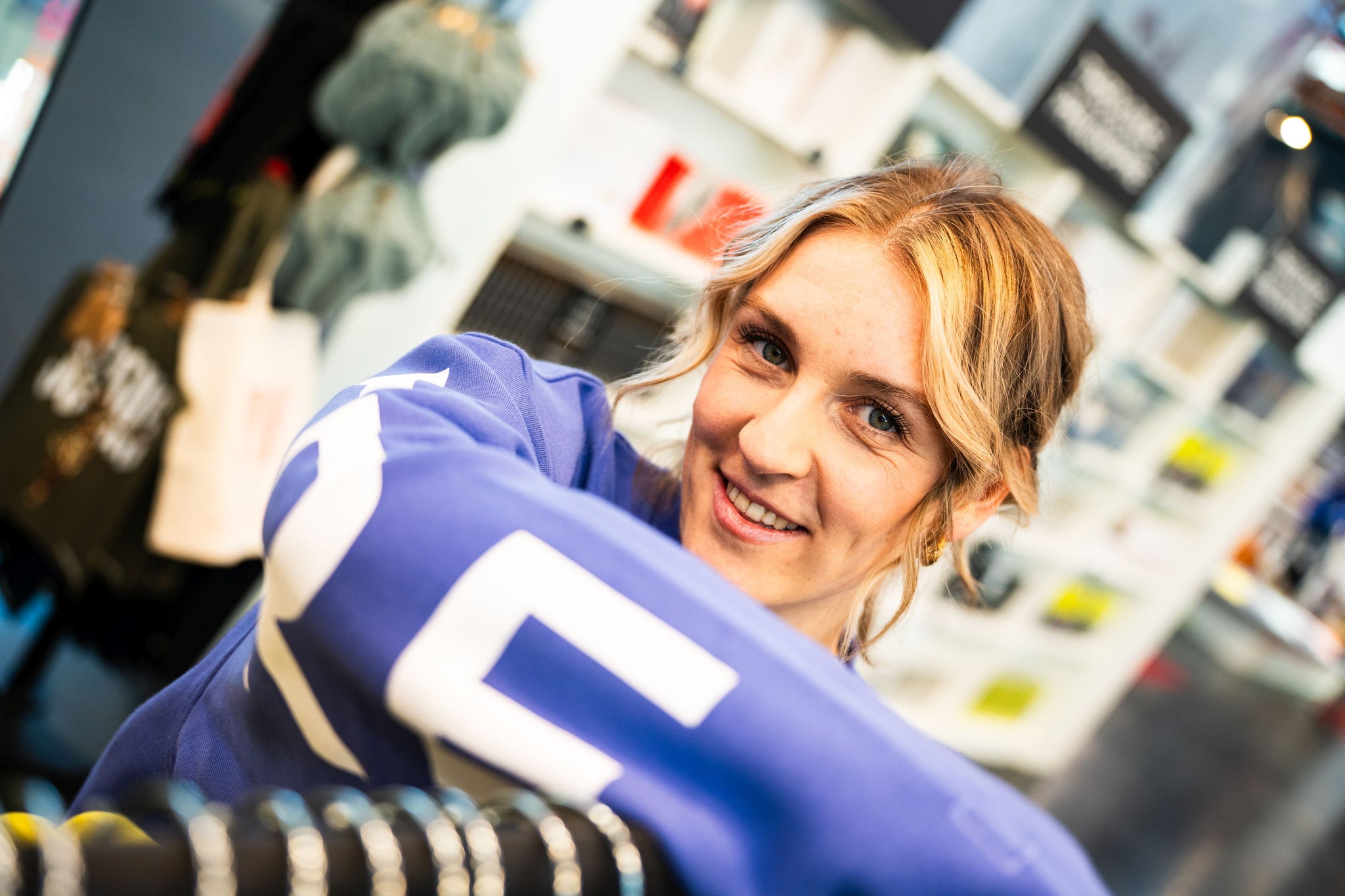 - oversized look, dropped shoulders, großer Schriftzug auf Ärmeln und Rücken